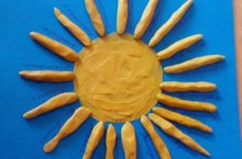 Цель: закреплять умение раскатывать палочки из пластилина прямыми движениями рук, аккуратно класть готовое изделие на картон, различать и называть желтый цвет. -