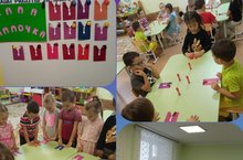Олылар төркеме балалары белән төсле кәгазьләр ябыштырырга ойрэнэбез. Тема: "Этигә бүләк"