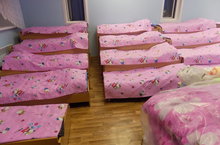 Спальная комната дополнительной группы оборудована новой мебелью и мягким инвентарем.