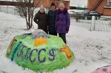 Район мәгариф бүлеге биләмәсе янындагы һәр сын:Кыш бабай,Кар кызы һәм әкият геройлары – бәйрәм рухында. Биредә ерактан ук Россия һәм Татарстан әләмнәре күренеп тора. Бина түбәсендә генә түгел, кардан ясалган һәм бик матур итеп буялган алар. ТАССРга – 100 ел ,Бөек Җиңүгә 75 ел диеп язып та куелган.Бу матурлыкны тудыруда үз көчебезне керттек:ел символы булган Күсене тәмле “пармезан” сыры белән сыйладык.