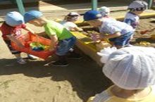 С. КашлевМы в песочнице играем,Строим домик из песка,Увлеклись, не замечаем,Что носки полны песка.Принесли воды в ведёрке,Чтобы не сломался дом,Красовался на пригорке,Мы его водой польём. -