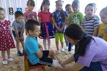 Сегодня дети подготовительной и старшей группы учились оказывать первую медицинскую помощь при порезазах и кровотечениях. Дети учились правильно перебинтовывать руку и ногу в случае пореза с кровотечением. Консультацию проводила медсестра детского сада Гимадиева Алина Рифкатовна.