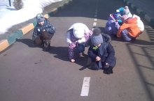 Наступила весна. Потеплело. На асфальте не осталось ни воды, ни снега. Но зато простор для детских рисунков.