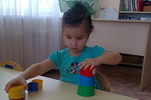 Учить детей различать пространственные направления "вверху - внизу"; учить сравнивать две группы предметов, выяснить количественные соотношения (больше, меньше, одинаково) без счёта и названия числа.