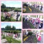 Дети разновозрастной группы на прогулке по участку детского сада с интересом наблюдали за растениями. Они познакомились с названиями цветов: петуния, герань, мальва, бархатцы, которые растут на территории детского сада.