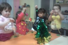 Дети елку украшали,Залия им помогала;Подавала им игрушки:Звезды, шарики, хлопушки.А потом гостей позвалиИ у елочки сплясали! -