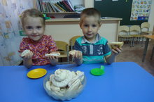 Дети старшей группе знакомяться с татарскими национальными блюдами: Чак-чак, эчпочмак, гөбәдия, вак бәлеш.