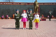 Бүген балалар белән Бөек Җиңунең 70 еллыгы уңаеннан сугыш ветераны Дмитрий Иванович Шатунов яшәгән йорт янына бардык. Ветеранның кызы Галина Дмитриевна һәм курше апаларны бәйрәм белән котлап, үзебезнең изге теләкләребезне теләдек. Ветеран турында хәтирәләр янарттык. Апалар өчен рәхәтләнеп җырладык, биедек, шигырьләр сөйләдек.