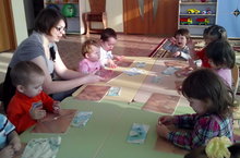 В группе взрослым помогать.
