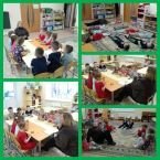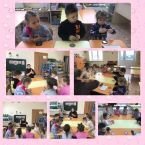 На логопедическом кружке дети разновозрастной группы делали упражнения на дыхание "ёжик" и "чей кубик поднимется выше?". А также познакомились с артикуляционным упражнением "мост". В конце занятия дети делали массаж пальцев с помощью колец "су - джок". / Логопедик түгәрәктә дөрес сулыш алу күнегүләре белән таныштылар. Боҗралар ярдәмендә бармакларга массаж ясадылар.