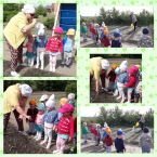 Дети ясельной группы совершили экскурсию по участку детского сада. Здесь они познакомились с кустом барбариса, с деревом - яблоня, на которой увидели маленькие яблочки. А также увидели как вырос картофель на огороде.