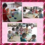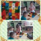 Дети ясельной группы очень любят играть в игры с конструктором. Сегодня они построили "поляну" для игр.