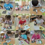 Дети на занятии по аппликации учились наносит клей на детали и приклеивать их к поверхности . Учились составлять на листе бумаги узор. Развиваем мелкую моторику. Учили детей работать сообща.