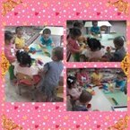 Дети ясельной группы познакомились с транспортом - камаз и трактор. Вспомнили цвета (красный, жёлтый, синий). Сравнили колёсики у машинки и у трактора. А затем лепили колёсики для машинки.