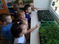 Дети второй младшей группы вырастили вот такой цветочный сад на подоконнике. / Икенче кечкенә төркем балалары тәрәзә төбендә шундый чәчәк бакчасы үстерделәр.