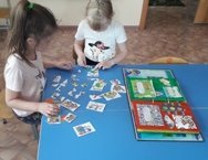 Наши воспитанники с удовольствием играют в домино "Татарский орнамент". / Балалар "Татар халык орнаменты" дип аталган күңелле домино белән яратып уйныйлар.