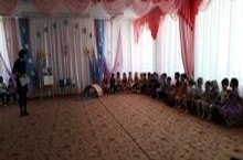 В нашем детском саду прошёл праздник, посвящённый дню рождения великого поэта Г.Тукая. Дети играли, пели песни, читали стихи, танцевали. А также приходили гости из Бишевского дома культуры. Были и герои сказок Г.Тукая: Шурале, Водяная, Коза и Баран. / Безнең балалар бакчасында бөек шагыйрь Г. Тукайның туган көненә багышланган бәйрәм узып китте. Балалар шигырьләр сөйләделәр, җырладылар, биеделәр, төрле уеннар уйнадылар. Биеш мәдәният йортыннан кунаклар килделәр. Бәйрәмдә Г. Тукай әкиятләренең геройлары: Шүрәле, Су анасы, кәҗә белән сарык та катнаштылар.