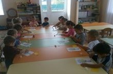 Дети на занятии по математике учились делить предметы на группы, считать группы и называть общее количество предметов в этих группах.