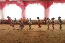 Прыжки из обруча в обруч. Цель: развивать ловкость, гибкость, прыгучесть, выносливость, газомер; учить прыгать из обруча в обруч; воспитывать интерес к занятиям физической культурой.