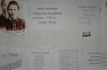 Г. Тукайга багышланган почмак. 31.03.2016 Тиздән татар халкының бөек шагыйре Г.Тукайның туган көне. Шул уңайдан шагыйрьгә багышланган почмак, стенд эшләдек, китапларыннан күргәзмә ясадык.