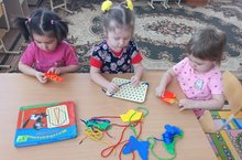Воспитанники первой группы раннего возраста с удовольствием играют со шнуровками. Шнурование-незаменимый способ развития мелкой моторики, выработки трудолюбия, усидчивости и внимания.