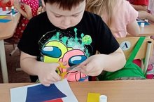 Сегодня воспитанники средней группы выполнили аппликацию "автобус".