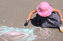 Балалар бакчасында бүген “Яшь рәссамнар” көне. Балалар төсле акбур белән асфальтка төрле әкият геройларын, табигать күренешләрен ясадылар. Соңыннар бер-берсенен рәсемнәрен карап әңгәмә кордылар.