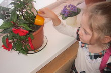 Безнең бакчада балалар hәр көнне гөлләрнең ничек үсеп, чәчәк атуын күзәтә, төпләрен йомшарталар, су сибәләр, тузанын сөртәләр. Шау чәчәктә утырган үсемлекләрнең матурлыгын күреп сокланалар. Әгәр даими тәрбияләмәсәң, аларның шулай үсмәячәген, үсемлекләрнең дә тере табигать икәнен, аларнын үсешенә яктылык, су сибеп тору, төпләрен йомшарту кирәк икәнен үз күзләре белән күреп торалар. Гөлләрнең төренә, нинди табигать шартларына яраклашып үсүенә карап, балалар гөлләрне тәрбияләү ысуллары да төрле икәнен үзләштерәләр.