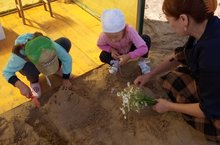 Продолжать учить детей творчески составлять коллективную композицию,используя ранее усвоенные способы лепки.