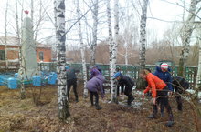 Чисталык икеайлык башлануы уңаеннан, укытучылар һәм укучылар өмәдә.