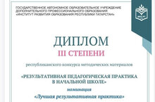 Гумерова Р.Г., Калимуллина З.М. и Сибгатуллина И.Ф. заняли призовое место в республиканском конкурсе методических материалов «Результативная педагогическая практика в начальной школе».