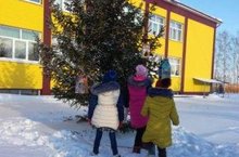Укучыларыбызкошларга кышкы суыкларны үткәреп җибәрергә ярдәм итә. Алар мәктәп тирәсендәге агачларга җимлекләр урнаштыра.