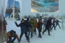 Ролевая игра: ученики сбивают снежками фашистские танки. Мероприятие приурочено защите Москвы в декабре 1941 года