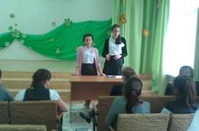 Участники 2 слета РДШ Гараева Лилия и Назиева Лия рассказали учащимися школы, как прошел слет. И о том, как их торжественно приняли в ряды РДШ.