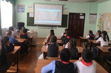 В 4 б классе прошёл экологический урок на тему «Экологическое путешествие». На уроке обучающиеся познакомились с историей и традициями празднования Дня Земли, влиянием деятельности человека на экологию природы. На уроке дети вспомнили законы дружбы, узнали о царствах Флоры и Фауны, совершили путешествие по страницам Красной Книги, отгадывали загадки, читали стихи «Мы -дети Земли».