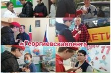 В канун 77-ой годовщины Победы в Великой Отечественной войне, Юнармейцы "Сокол" продолжают вручать георгиевские ленточки.