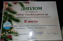 "Новогодняя феерия" 13.01.2025 Поздравляем сотрудников детского сада, родителей наших прекрасных малышей! Наш детский сад занял 2 место за новогоднее оформление подведомственной территории в конкурсе "Новогодняя феерия"