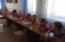 Математик кузаллау дэресе. Зурлар торкемендэ шакмаклы дэфтэр битендэ ориентлашырга ойрэнуне балалар бик телэп узлэштерэлэр. Шул ук вакытта алар санарга да, арифметик мэсьэлэлэр дэ чишэргэ ойрэнэлэр.