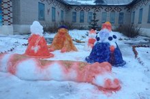 Буген бакча хезмэткэрлэре балалар бакчасы каршына матур итеп кар сыннары ясап куйдылар. Алар арасында кыш бабай,кар кызы,маймыл,дунгыз баласыда бар. Ике якта ике чыршы да калкып чыкты. Хэзер аларны торле тослэргэ буяп куясы гына калды.