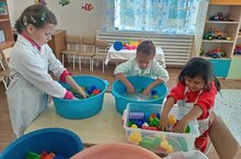 "Уенчыклар юдык" 26.09.2024 Балаларыбызны хезмәткә, эшләгән эшеннең нәтиҗәсен күрә белергә, чисталыкка, пөхтәлеккә өйрәтергә тырышабыз. Бүген дә без балалар белән уенчыклар юдык.