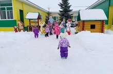 Саф һавада балаларыбыз белән бакчабыз территориясендә бәйрәмгә әзерлекне күзәттек. Бизәлгән тәрәзәләребезне, чыршыны карадык.