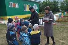 "Сәламәт яшәү рәвешен сайлыйбыз" 09.09.2022 Бүген бакчабызга китапханә һәм мәдәният хезмәткәрләре кунакка килделәр. Алар "Сәламәт яшәү рәвешен сайлыйбыз" дигән темага әңгәмә уздырдылар.Балаларны сәламәтлек турында китаплар белән таныштырдылар. Таза-сау, сәламәт булу өчен спорт белән шөгыльләнергә кирәклеген аңлаттылар. Балалар белән кызыклы уеннар уйнадык.