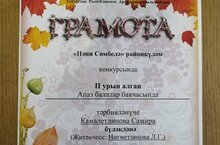 "Конкурсларда катнашабыз" 16.11.2021 "Нәни Сөмбелә" районкүләм конкурсында 2 нче урын алган Камалетдинова Самира Данил кызын котлыйбыз! Алга таба да зур уңышлар насыйп булсын!