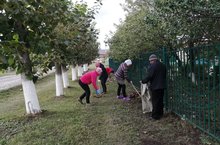 "Кышка әзерлек" 20.09.2021 Бакчабызда эшләүчеләр белән, территориябездәге агачларның ботакларын кисеп, чупләрдән, агач яфракларыннан арындырдык.