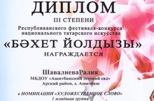 "Бәхет йолдызы" исемле Республика күләмендә үткәрелгән фестиваль - конкурста безнең бакча балалары дипломат булдылар.