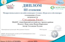 • муниципальное бюджетное дошкольное образовательное учреждение «Ашитбашский детский сад» Арского муниципального района Республики Татарстан Татартстан республикасы Арча муниципаль районы "Ашытбаш балалар бакчасы "муниципаль бюджет мәктәпкәчә белем бирү учреждениесе