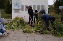 “ Беркем дә, берни дә онытылмый” Җиңү волонтерлары отрядындагы укучылар Бөек Ватан сугышында һәлак булган авылдашлар истәлегенә куелган һәйкәл янын чистарттылар. 08.10.2018