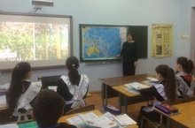 География һәм тарих атналыгы кысаларында 7нче класста Гыйззәтуллина Г.Х. географиядән ачык дәрес күрсәтте. Ул “Австралия табигатенең үзенчәлекләре” темасы буенча ФГОС таләпләренә туры китереп үткәрелде. Дәрестә интерактив тактада эш, яңа технологияләр, сингапур структуралары уңышлы кулланылды.