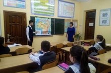 27 нче ноябрь көнне Гыйззәтуллина Г.Х. 7класс укучыларының әти-әниләре каршында ачык дәрес бирде. Дәрес “Көньяк материкларның үзенчәлекләре.Африканың географик урыны,тикшеренү тарихы” темасына ФГОС таләпләренә туры китереп, яңа технологияләр кулланып үткәрелде.Балалар дәрестә актив катнаштылар,үз белемнәрен әти-әниләренә күрсәттеләр.