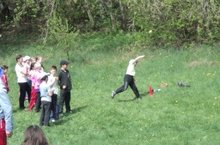 ”Аҗаган” уены элементлары балаларны тагын да җанландыра.” Беренче ярдәм” буенча да белемнәр сынала. Ахырдан спорт уеннары дәвам итә. Ярышларда,уеннарда бердәмлек, дуслык, татулык кебек сыйфатлар ныгый,көчәя. -